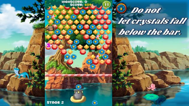 Preparati per un nuovo gioco di puzzle avventura nel 2016. Gioca Bubble Shooter! Molto facile e divertente da giocare, non richiede particolari abilità per giocare. Avventura attraverso un mondo magico per bambini e adulti! È cristalli identici, sparare contro di loro da distruggere. Non lasciate che i cristalli scendono al di sotto delle lamelle altrimenti perdere.