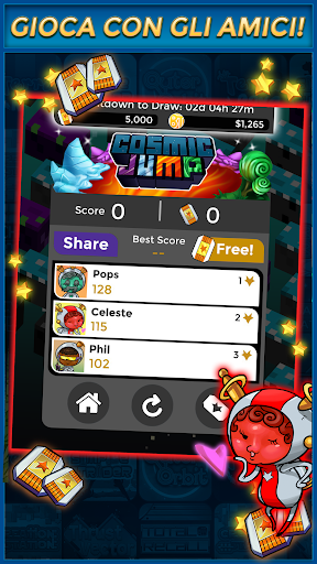 E' molto semplice: con ogni estrazione, condividiamo parte degli introiti derivanti dalla pubblicità con un fortunato vincitore. Quanto più ampia è la nostra base di utenti, tanto più denaro potremo assegnare. Non ci sono acquisti in-app, e non è necessario pagare per vincere. Abbiamo chiamato il nostro modello "Free-2-Win", e ne siamo orgogliosi, quindi scarica Cosmic Jump e prova a vincere denaro gratis! Perché giocare ad altro?