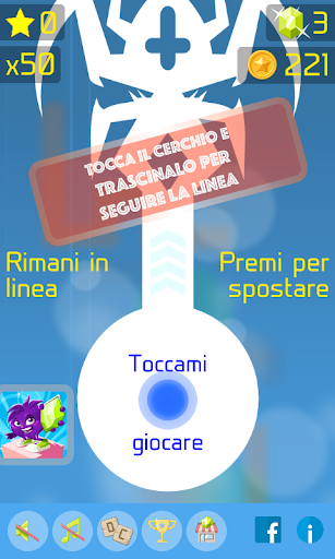 Segui la linea 2D Deluxe Run è un gioco finger-runner semplice ma impegnativo. Trascina il dito e corri lungo il labirinto che si creerà sullo schermo in modo casuale e cerca di seguire la linea. Non toccare i bordi e stai attento agli ostacoli in movimento. Continua a correre più che puoi ed evita gli ostacoli per sbloccare nuovi livelli. Diventa imbattibile, metti alla prova le tue abilità e controlla costantemente se i tuoi amici sono riusciti a impostare un nuovo record! Mostra il tuo punteggio più alto al mondo intero grazie alla classifica integrata dei servizi di giochi di Google Play.
