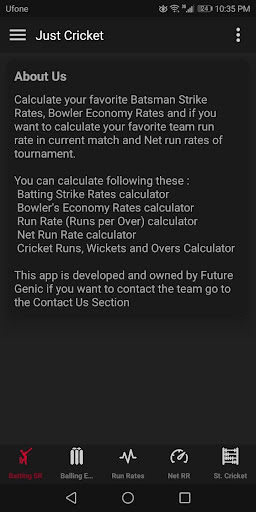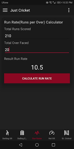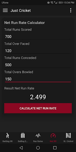 Puoi calcolare i tuoi tassi di colpi di Batsman preferiti, i tassi di economia Bowler e calcolare anche il tasso di esecuzione del team in attuali partite e tassi di percorrenza nette del torneo.