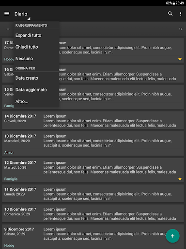 - Ordina le note del diario per data di creazione, data di aggiornamento, il titolo e la categoria
