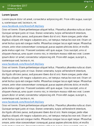 Il Mio Diario è facile da usare, intuitivo, veloce, elegante e sicuro diario con sincronizzazione nel cloud. Salva i propri pensieri, ricordi, memorie, segreti, gli eventi della vita, note o altre informazioni riservate.