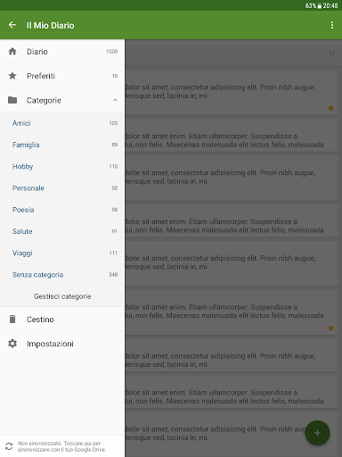 - Sincronizzare le note del diario con Google Drive tra tutti i dispositivi Android che si usa
