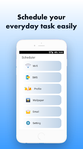 Scheduler è un'app multifunzione, con scheduler per Wi-Fi, SMS, wallpaper, profilo (silenzioso / generale) ed e-mail.