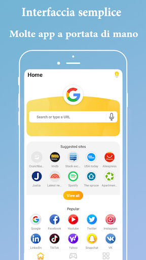 💾 Risparmia molto spazio di archiviazione sul telefono con la nostra applicazione accedendo a molti siti di social network, acquisti, notizie e messaggistica istantanea, oltre all'accesso rapido alle applicazioni utilizzate di recente.