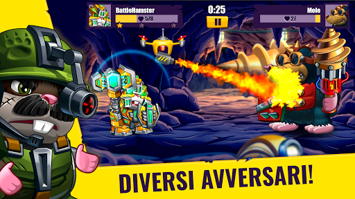 Maligna razza aliena ha conquistato la nostra Pianeta e ha trasformato tutta la gente in animali! Solo i coraggiosi Criceti non vogliano arrendersi! Lotta insieme ai bravi Criceti, sconfiggi i Boss, crea la Super arma e distruggi la nave degli Alieni!
