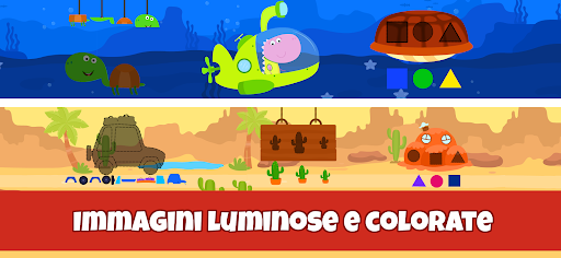 4. Oceano - Tuffati nell'oceano ed esplora il mondo sottomarino! Incontra le tartarughe, i granchi e i pesci risolvendo divertenti enigmi per bambini. Scopri cavallucci marini, delfini, pesci e scrigni del tesoro. Una ricerca per trovare fantastici puzzle per bambini di 2, 3, 4, 5 anni.