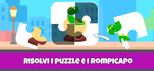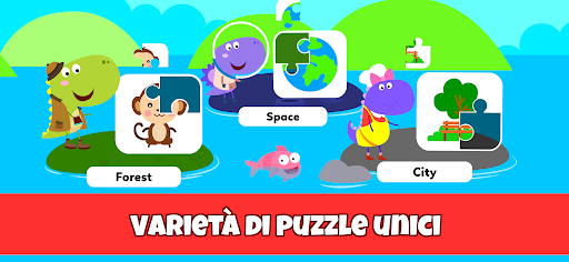 7. Città - Vai in giro per la città dei dinosauri con gli amici. Passa del tempo al parco e completa i puzzle del gelato per i bambini. Esplora i negozi, le stazioni di polizia e le fermate degli autobus. Completa i puzzle dei vigili del fuoco, delle auto e delle case.