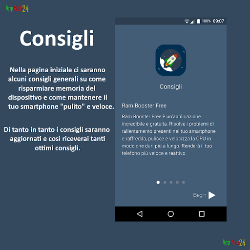 utilizzando spesso quest'app. Devi solo avviarla e premere "Begin" per avviare la pulizia delle cache.