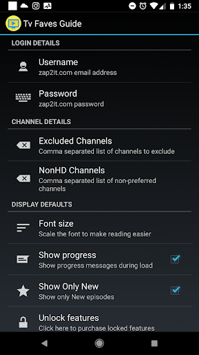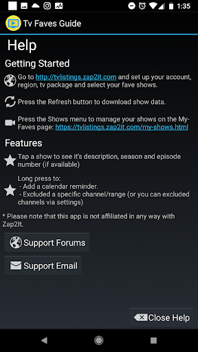 La Guida ai favori TV utilizza ZAP2IT per mostrare il tuo TV personalizzato.Per usarlo, è necessario prima creare un account su ZAP2IT, selezionare la tua regione e il pacchetto.Quindi usa questa app per ottenere un accesso super rapido a quello che su!