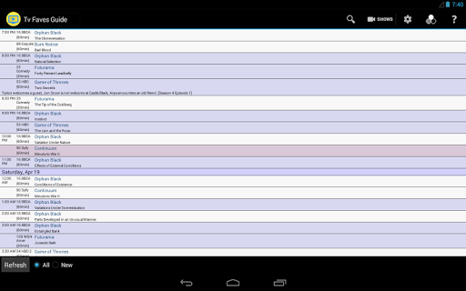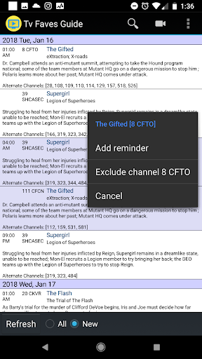 Si noti che questa app è per gli spettacoli preferiti di ZAP2IT enon canali preferiti.