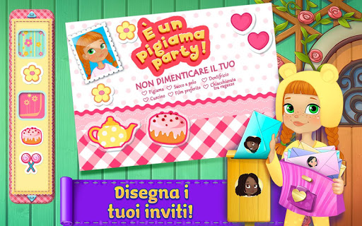 LOTTA COI CUSCINI! Scatenati lanciando cuscini ai tuoi migliori amici e passa una pazza serata! Pianifica la festa notturna dei tuoi sogni! Decora gli inviti, disegna i tuoi pigiami, prepara deliziosi pancake, gioca a Caccia alla Caramella e tanto altro!