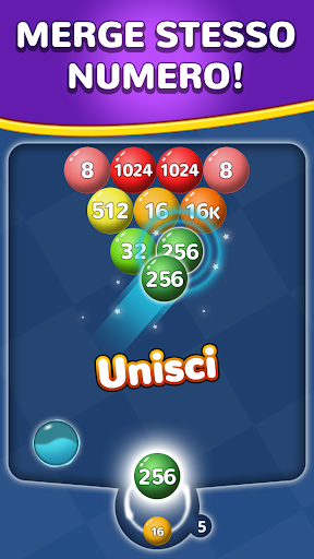 🌞Basta far scorrere le dita, unisci numero bolle. 1024, 2048, 4096, 8K, 16K... Spara bolle e unisci numero . Sfida punteggi più alti per rilassarsi🏆.