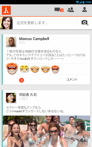 * リアクション - Hooktでは、「いいね」だけではなく、驚いたり、笑ったり、怒ったりと、さまざまな感情を表現できます。