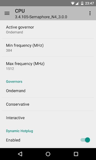 - Per CPU tunables support (scaling min freq, scaling max freq, utilization threshold, governor)