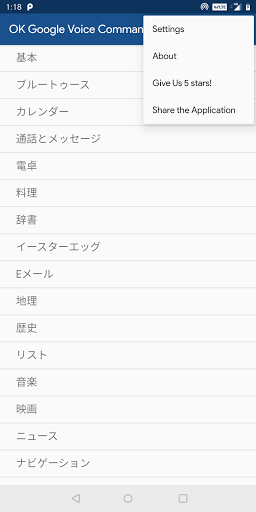このアプリは、特別なフレーズOkGoogleまたはHeyGoogleによってアクティブ化されるGoogleアシスタントおよびGoogleHomeスマートスピーカーの音声コマンドの完全なリストを提供します。すべての音声コマンドは分類されています。