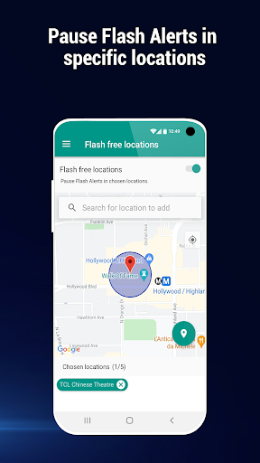 「フラッシュフリーロケーション」機能を使用すると、特定の場所を選択してフラッシュアラートを一時停止できます。これは、たとえば、職場、学校、または劇場や映画館である可能性があります。