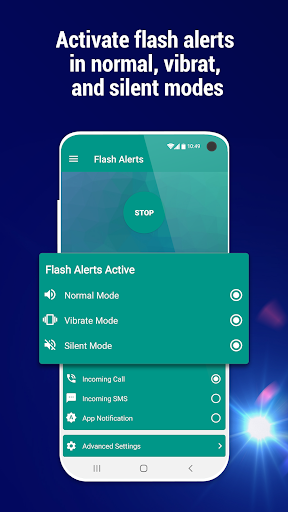 電話が通常モード、サイレントモード、または振動モード、または3つすべての組み合わせである場合、フラッシュアラートがアクティブすることを選択できます。