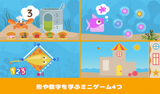 *4つのオリジナルのミニゲームで子供が形、色と数字を学べます