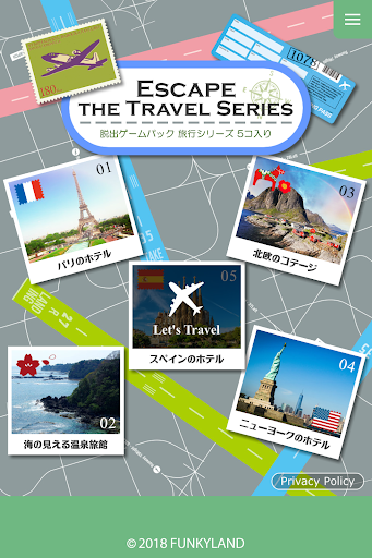 おしゃれな雰囲気の気軽な脱出ゲームが5コ入りで、好きな旅行先を選んで旅行気分を味わってください。