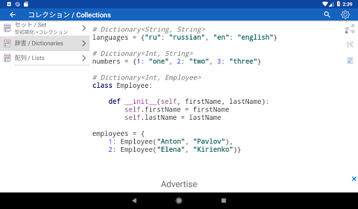 ✓ どのプログラミング言語を選択するべきか分かりませんか?アプリケーションは、さまざまなプログラミング言語のあらゆるサンプルの構文を比較するので、プログラミング言語を選択する際にバランスのとれた決定を下すことができます。