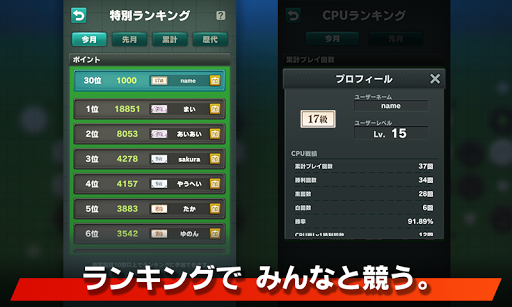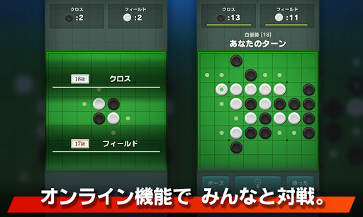 オンライン対戦で、全国のプレイヤーとリバーシを対局することができます。