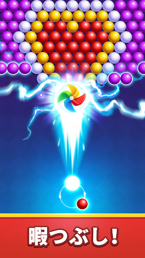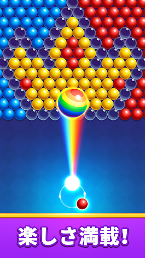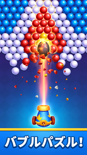 - バブルを投げて、同じ種類のバブルを3つ以上揃えるとバブルが爽快にPOP!簡単に消せるよ!