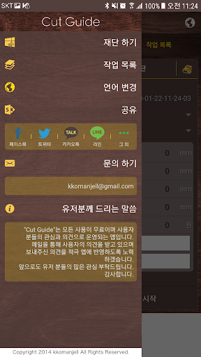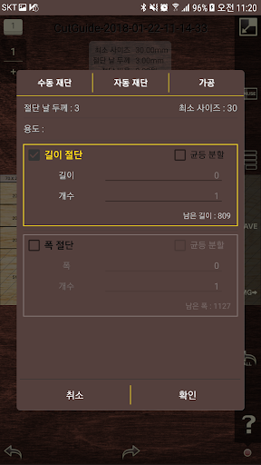 커팅 가이드(Cut Guide)는 물건을 재단 할때 미리보기 기능을 제공해 줍니다. 원하는 사이즈를 입력하면 자동으로 컷팅이 되기도하며 사용자가 직접 입력하여 수정도 가능 합니다. 목재 합팝이나 원단, 금속판등 커팅이 필요한 것은 어디든 응용 가능합니다. 폰 만 있다면 언제 어디서든 재단 가이드를 만들 수 있습니다. 일단 한번 사용해 보세요.!