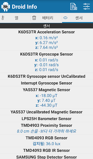 -센서: 실시간 검사로 당신의 기기의 센서들에 대한 분석