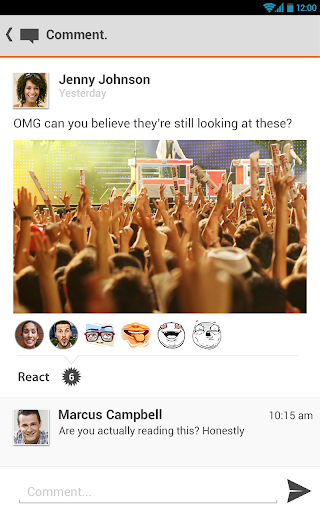 * 리액션 - 이제 표현을 제약하는 '좋아요'에서 벗어나세요. 얼굴 표정을 촬영하여 여러분의 개성이 듬뿍 담긴 리액션을 직접 만들 수 있습니다. 아이 쒼나! 쑈킹! 화났쪄, 뿡뿡! … 원하는 대로 표현하세요. 여러분의 리액션이니까요.