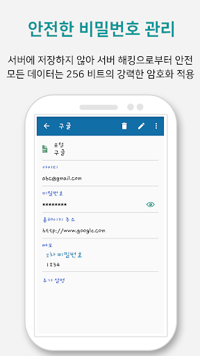 모든 비밀번호 데이터를 온라인 서버에 저장하고 관리하는 것이 아니라 사용자의 휴대폰 메모리에만 저장되는 방식입니다.