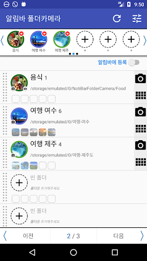 위치정보를 사용하여 여행지마다 찍은 사진을 분류할 수 있지만 알림바 폴더카메라를 이용하면 계획된 장소에 대한 폴더를