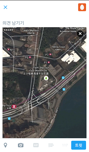 - 지도의 한 지점을 길게 클릭하면 (long click), 위치 아이콘이 표시됩니다. (이미 아이콘이 있었다면, 기존의 아이콘은 사라지고 클릭한 곳에 새로 표시됩니다.)