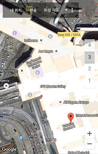 - 실내 지도를 제공하는 건물(특정 지역의 일부 건물 - 공항, 쇼핑몰 등)이 화면의 중앙에 오면 실내 지도가 보입니다.