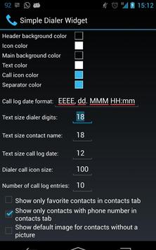 Also, you can fully customize the widget (change every color, text size, ...) and put the widget on your Lockscreen (later requires Android 4.2, I recommend to disable the "dialer"-tab when placing the widget on the lockscreen)