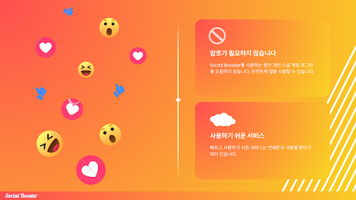Social Booster를 다운로드하여 소셜 미디어 계정을 성장시키고 인기있는 첫걸음을 내딛어보세요!