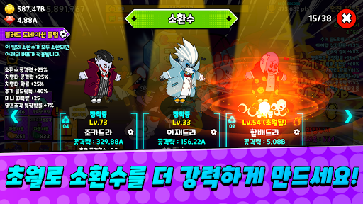 3. 한팀의 소환수를 모두 소환하면 강력한 팀버프를 얻을 수 있어요.