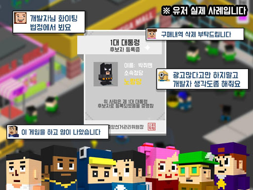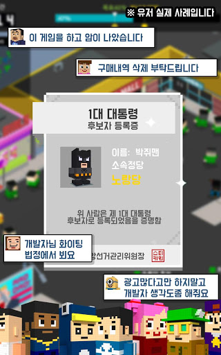 답답한 현실 정치 잠깐 잊으시고, 재미있는 캐릭터들과 함께 즐겁게 대통령에 도전해보세요.