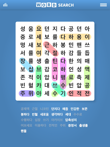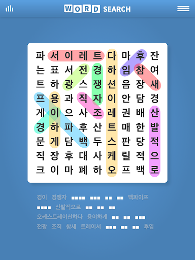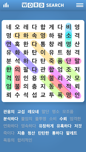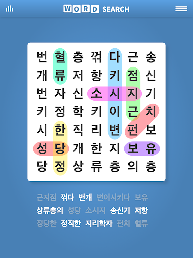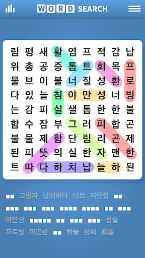 저희의 모든 퍼즐에서 사용되는 단어는 표준 영어 단어이며 대부분의 다른 단어 검색 퍼즐 게임보다 더 중요합니다. 따라서 저희 게임은 재미도 있으면서 어휘 실력을 쌓고 새로운 단어를 배우는 데 유용한 도구로 여겨집니다. 단어 목록의 단어를 탭하면 사전에서 뜻을 찾아볼 수 있습니다.