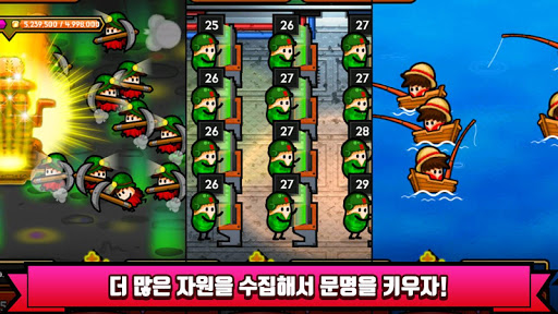 우리의 합체 영웅들과 수백수천 스테이지의 힘든 배틀에서 승리하고 최고의 문명을 키워보세요!