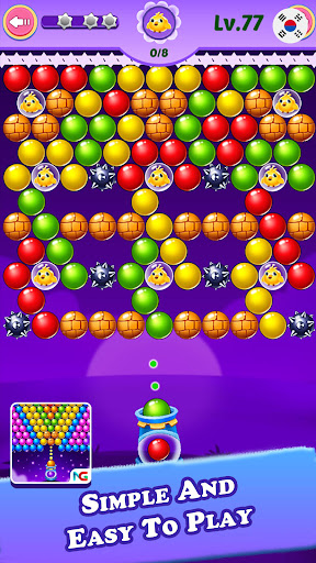 - 슛 버드 슈터 레벨을 보자. 라운드에서 Gunner는 각각의 거품을 방출합니다 : 노란색, 파란색, 빨간색, 자주색, 주황색은 미션이 버블 패널에 전류 거품을 쏘아 3 개 이상의 거품을 색상으로 만들고 거품이 자동으로 파괴됩니다. 라운드에 남은 공, 당신은 승리 (승리) 또는 테이크 다운 모든 새들도 당신의 팝 슈터를 완성합니다.