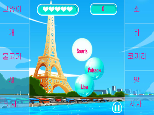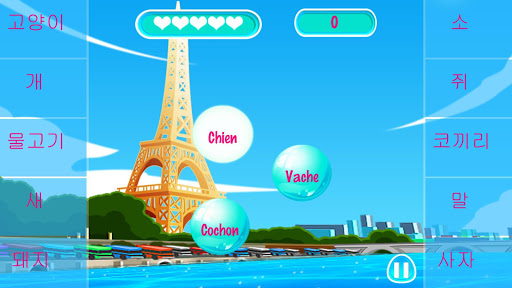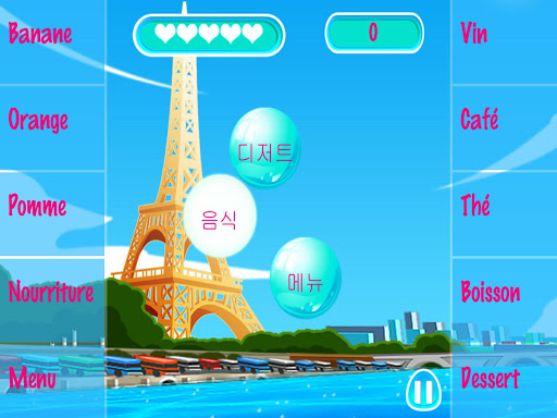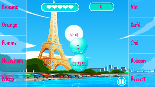 프랑스어 거품 목욕은 단순한 게임입니다. 당신은 단지 응답되는 단어 번역과 거품을 터뜨리면 됩니다. 일찍의 레벨들에서는 맞추는 기회를 50/50을 줍니다. 당신은 기본적으로 추론합니다. 하지만 각 언어 카테고리의 단계들을 통한 과정에서 당신의 단어지식은 개선됩니다.