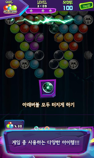 • 같은 버블을 3개 이상 맞춰 터뜨리세요.