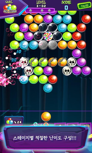 • 버블 모두 터트리기, 해골 구하기, 보스 잡기 등 여러개의 게임 목표가 있습니다.