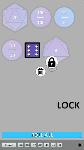 Tekan dan tahan mati untuk menarik menu dadu. Kunci atau padamkan die dari menu dadu.