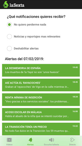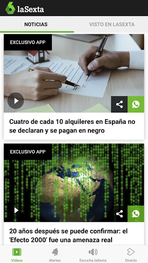 Muat turun secara percuma aplikasi paling lengkap untuk melihat berita terkini, yang terbaik dari program televisyen La Sexta dan dengarkan audio program kami. Di telapak tangan anda, anda akan mempunyai maklumat terkini, dengan pengalaman melayari terbaik yang disediakan oleh aplikasi asli.
