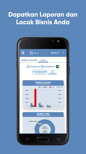 • Menjana laporan untuk memantau perniagaan anda dengan serta-merta dan dalam tempoh yang anda mahu,