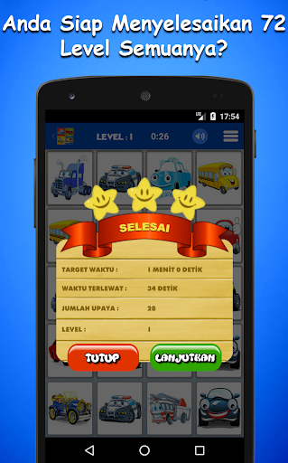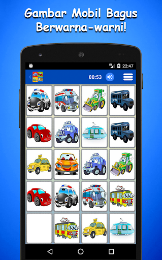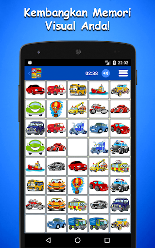 Permainan memori untuk kanak-kanak - kereta adalah salah satu permainan yang paling popular untuk mempertajam ingatan visual dan mengembangkan kecerdasan. Padankan beratus-ratus imej yang tersedia dan mengembangkan kecerdasan anda sambil meningkatkan ingatan anda. Ini adalah permainan permainan papan klasik zaman kanak-kanak kita. Permainan ini mempunyai 2 mod main: