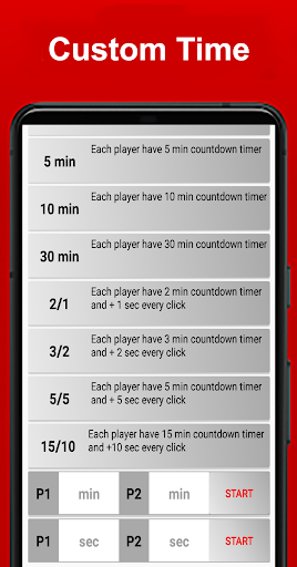 Jam Catur, Masa catur dalam talian: Anda boleh mencari mod masa yang berbeza untuk dimainkan dengan aplikasi ini, seperti pilih antara Fischer, Bronstein, dan kelewatan yang mudah, kematian mendadak dan membantu untuk strategi catur.