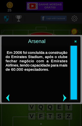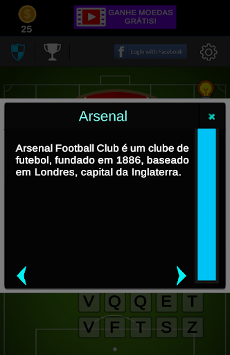 Dalam peringkat pertama anda akan dipaparkan perisai pasukan yang paling terkenal sebagai Santos FC , Flemish, Pokok Palm dan lain-lain ..., Tetapi ketika anda melengkapkan lebih banyak tahap, perisai liga yang lebih sukar akan dipaparkan dengan meletakkan pengetahuan anda tentang dunia bola sepak.